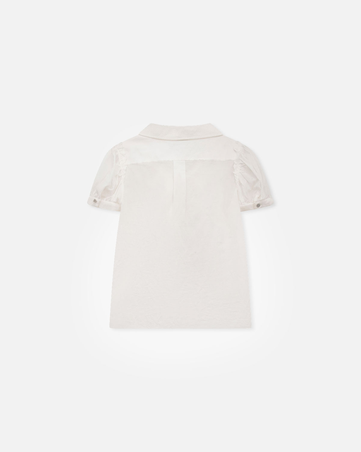 Dolce & Gabbana’s short sleeve blouse features a playful Peter Pan collar and delicate floral beadwork on a crisp white cotton-viscose base. The coquette, whimsical design and relaxed fit make it a dreamy addition to any wardrobe.