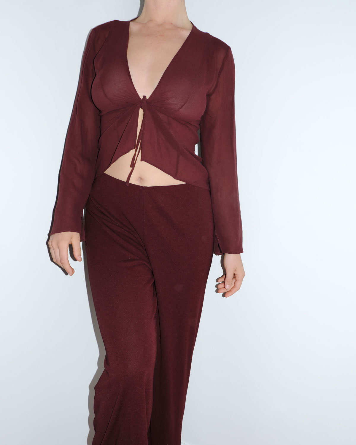 La Perla’s burgundy three-piece set features a timeless silhouette that feels so current. The draped camisole top features a flattering ruched side while the tie-front jacket adds a the perfect layer with its deep V-neck and relaxed fit. The high-waisted wide-leg trousers complete the look with a sleek, flowing silhouette. Crafted in a luxurious burgundy synthetic blend, this set transitions effortlessly from day to evening, offering versatility and refined style.